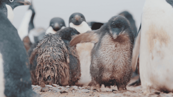 摄制组还目睹了阿德利企鹅种群的灭绝。“因为气候变暖,当地降雪变成了降雨,而企鹅宝宝依靠蓬松绒毛抵御严寒,绒毛在干燥条件下才能保持体温,被打湿后,会导致低温症,它们无法在极地生存。”