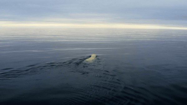 没有了捕猎的浮冰,游泳去寻找食物的北极熊