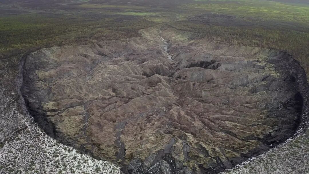 西伯利亚冻土融化后形成巨坑