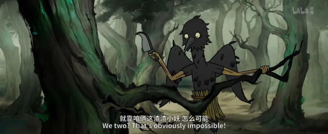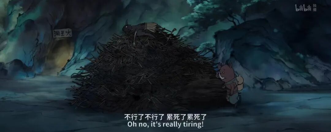 已经秃了的小猪妖和乌鸦妖本以为可以休息一会,却又被安排上砍柴的活儿,还要求一晚上一千斤。