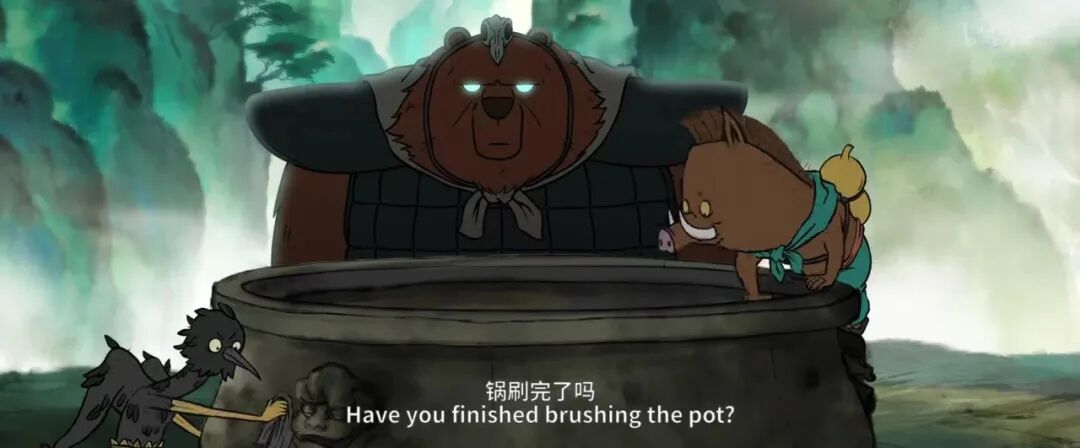 紧接着,小猪妖和乌鸦妖又被派去刷锅,因为大王决定要把唐僧肉煮着吃。