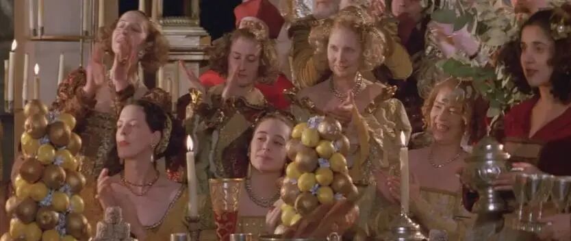 这应该就是本片被砍不让出街的原因所在吧,但还有一个原因,那就是众人分食圣婴的尸体,祈求护佑的做法恐怖至极。导演用这样恐怖的故事,将整个世界所有的秩序和规范全都荡然无存后的样子呈现了出来。