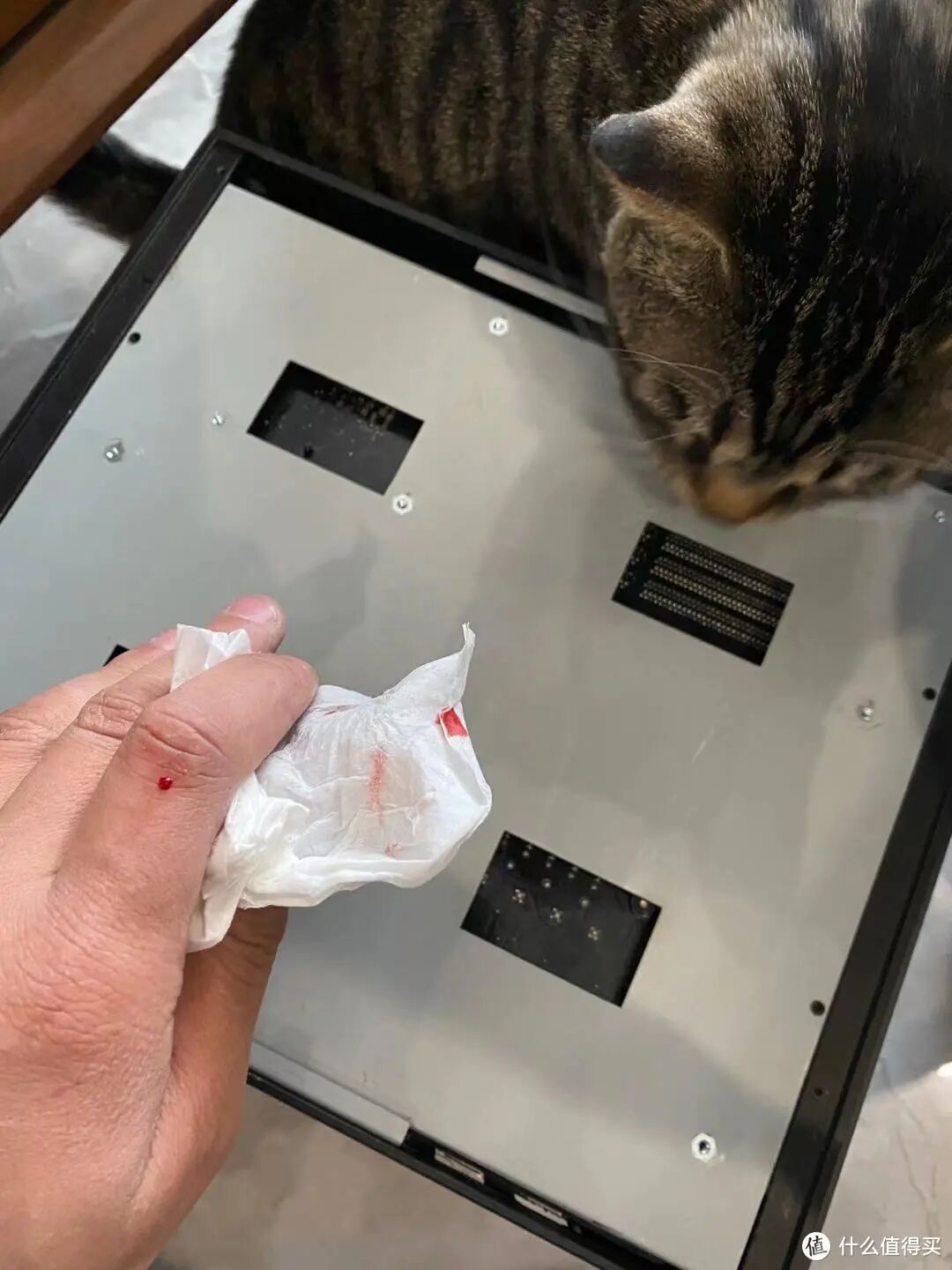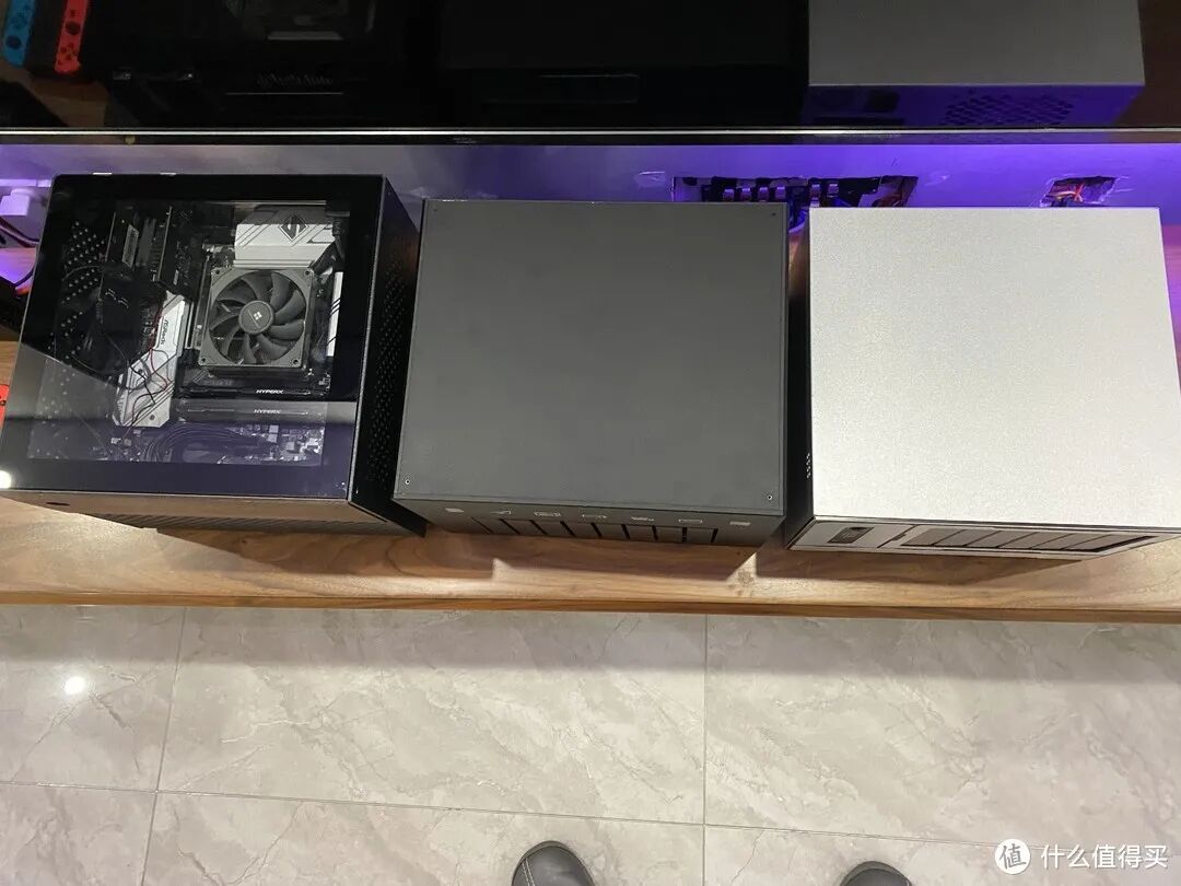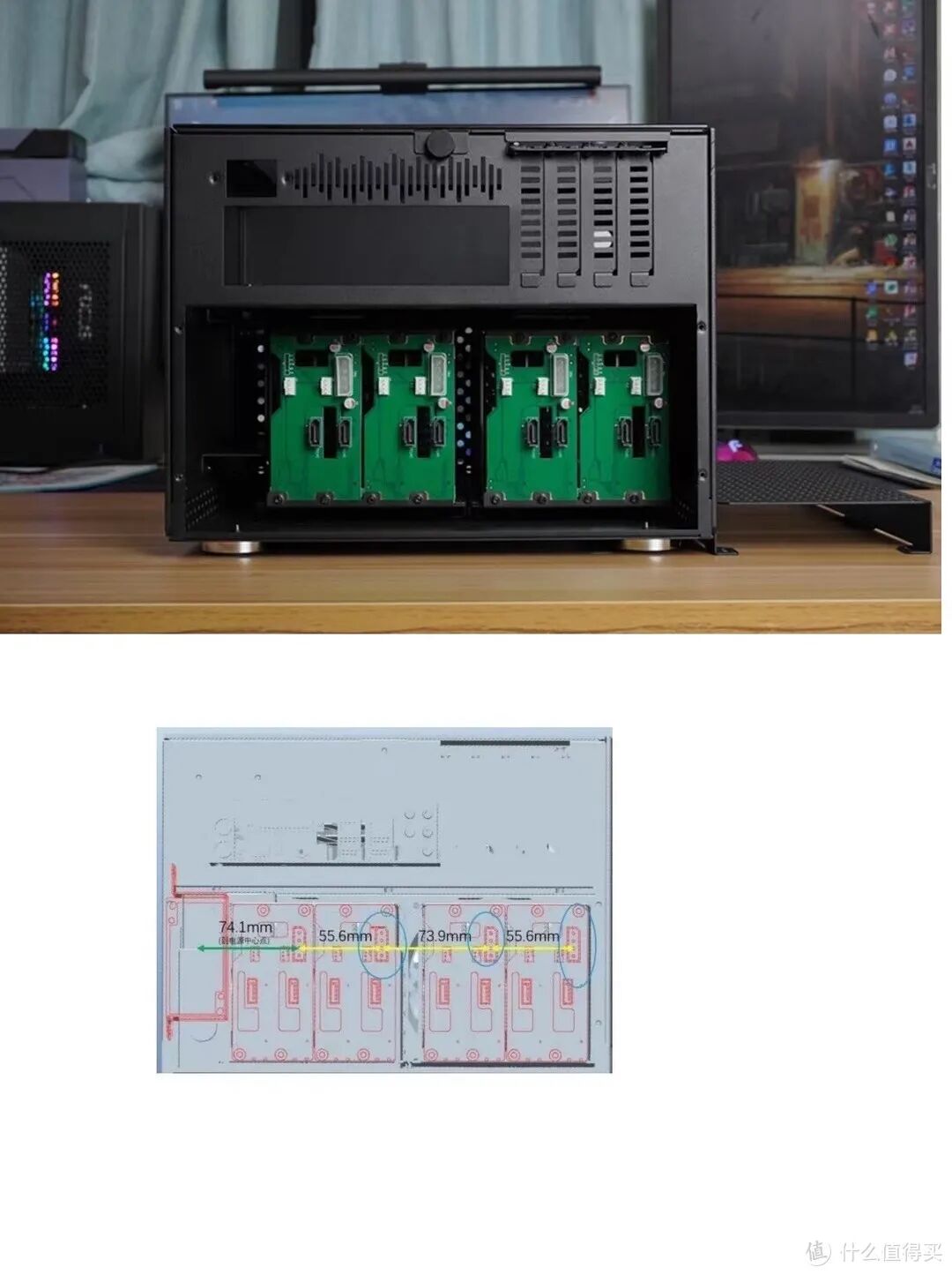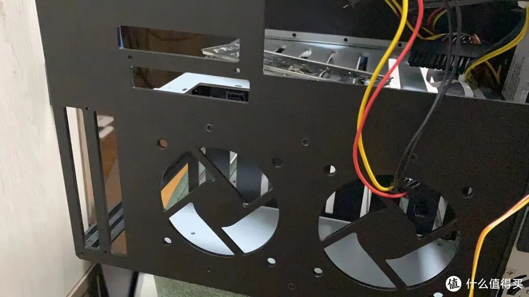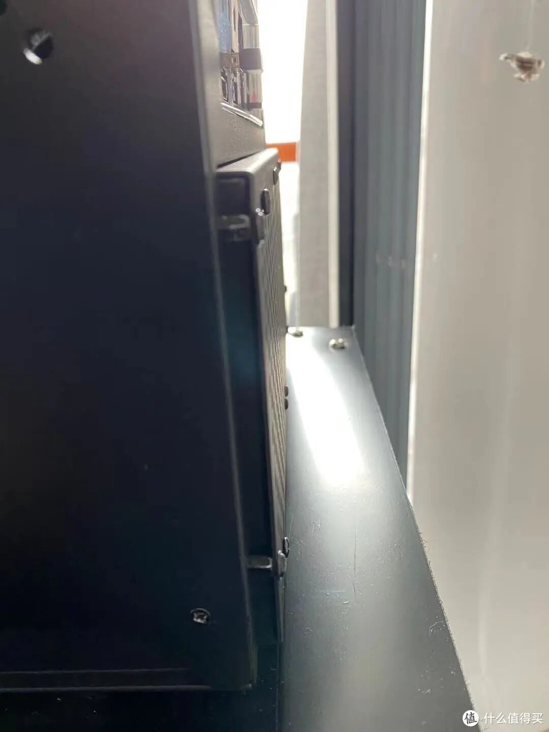 做工:做工一般,没有明显瑕疵,螺丝孔位略有不正。钢板材质蛮厚,顶部是玻璃背板,可以搞成RGB的NAS。