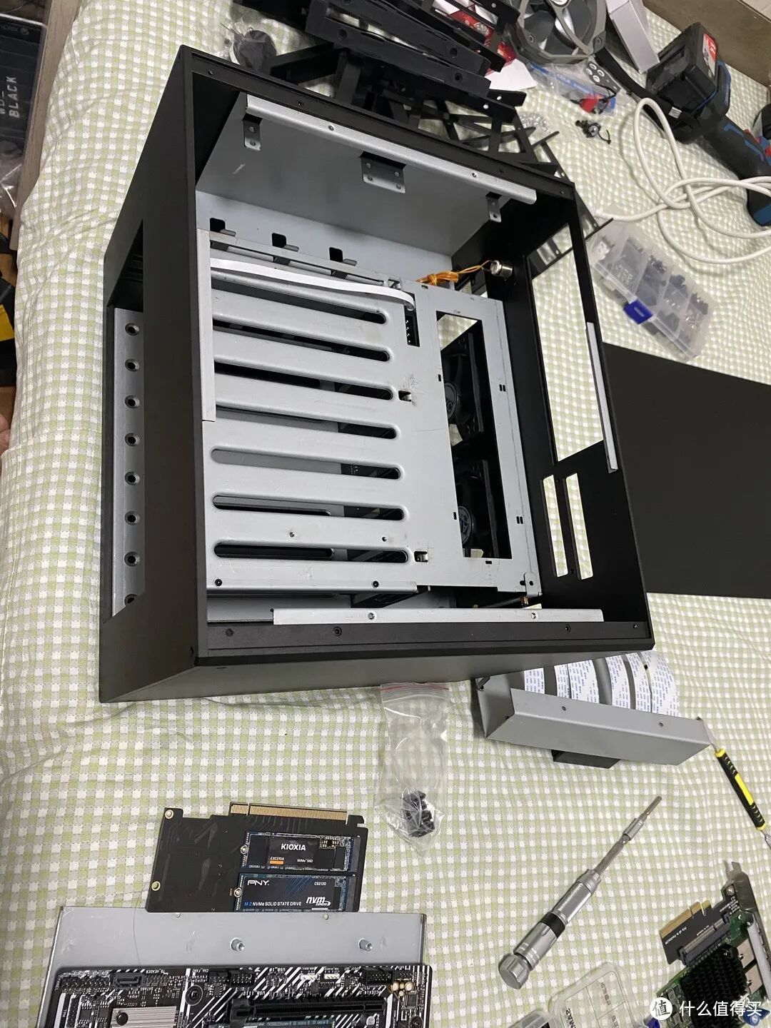 由于设计的过于紧凑,以及主板导致外加各种转接设置,导致这个机箱的装机难度很大,理线很困难,最后没办法,我把扩展配件包的部分全撤掉了,只保留了最基本的配置,没有万兆网卡,没有扩展PCIE的NVME槽,只是当一个最普通的配置。太复杂的设计徒增装机难度,实际体验并不好也不实用。