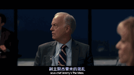 与此同时,主厨也揭晓了众人刚入场时,好奇议论的那位坐在角落里独饮的酒鬼老妇正是自己的母亲,这一事实足够讽刺,痛恨酒精的女人,自己成了酒鬼,而身为儿子的主厨的纵容,也可谓是对母亲不能保护自己的绵长折磨和控制——主厨母子的病态关系不动声色,但可见一斑。