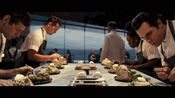 可以说,本片故事既是一个打工人对资本阶级的反杀,也是一个被逼疯魔的艺术家,用他杀和自杀明志的寓言,亦是心意简朴的对当今美食届花里胡哨,华而不实的菜肴营销的一种劝诫。