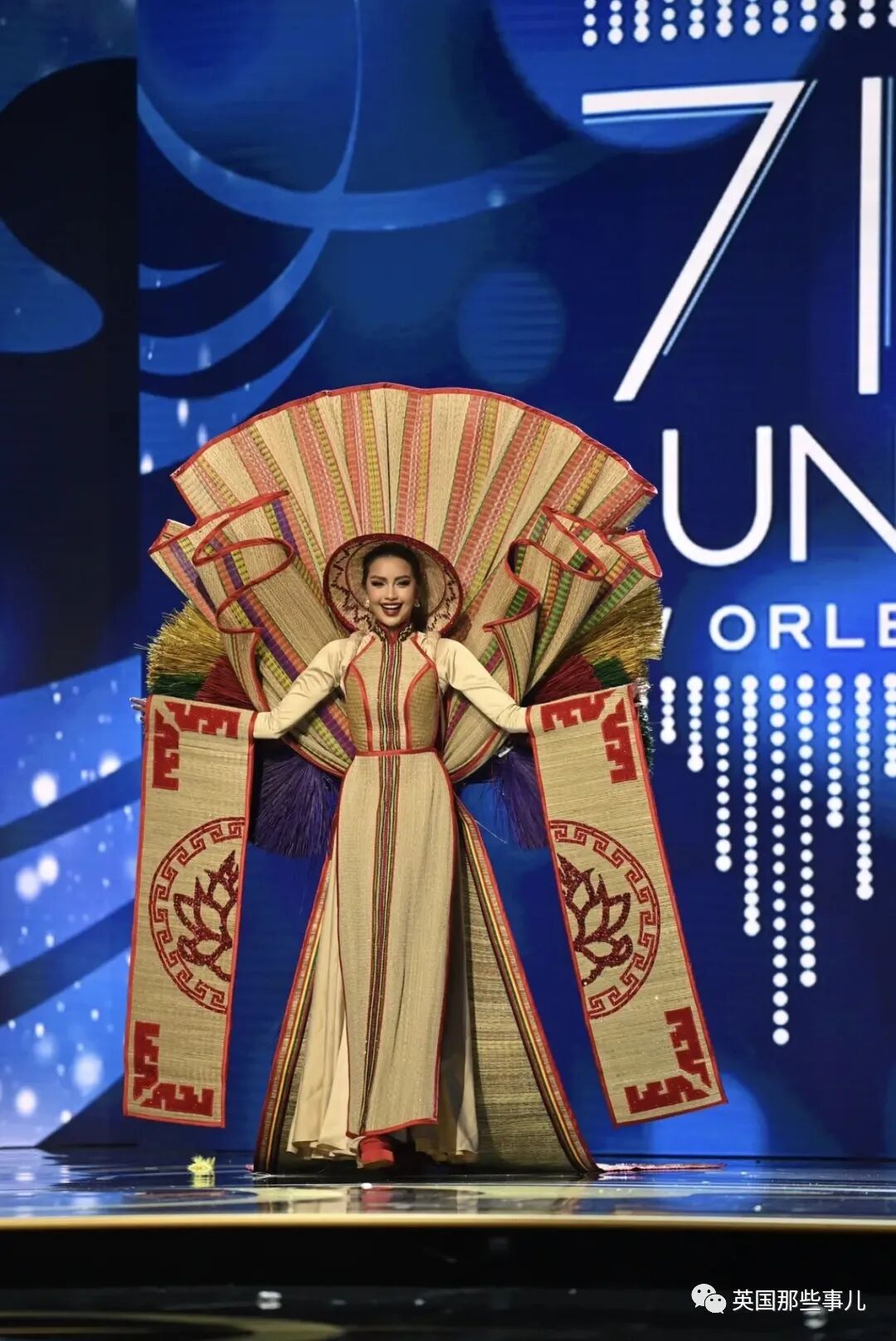 越南小姐Nguyễn Thị Ngọc Châu的服装来源于越南一个手工艺村,她的整身打扮都由环保面料制成。