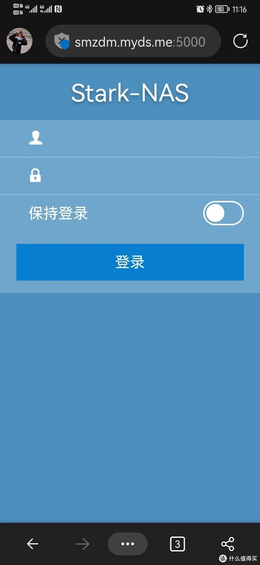 🔺然后我们直接关闭手机WIFI打开手机流量,用手机浏览器,输入DDNS的地址+对应的端口,就能正常访问群晖了。