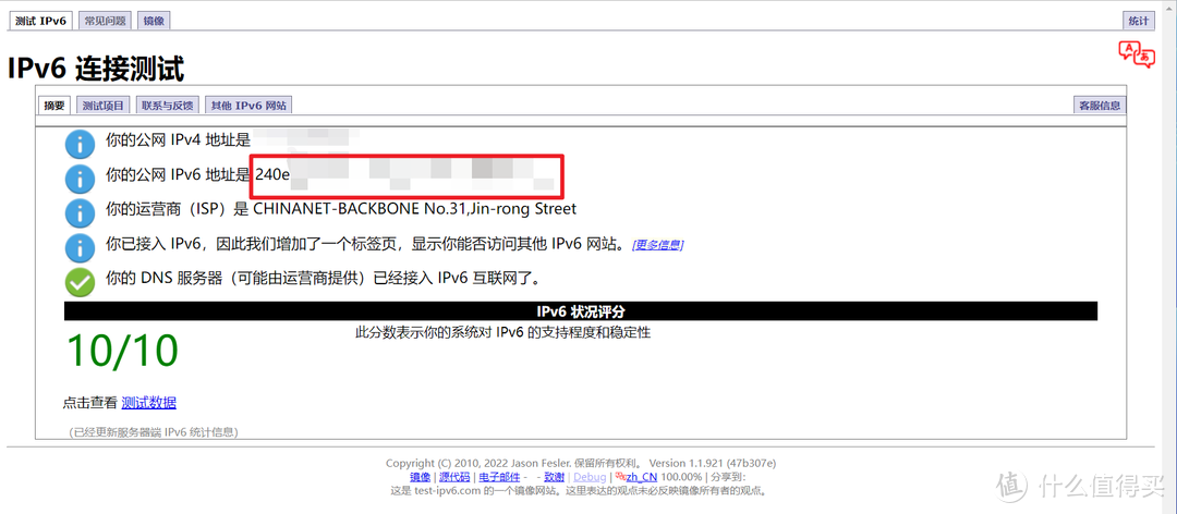 🔺我们直接在浏览器中输入网址:http://test-ipv6.com/