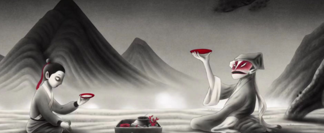 片中画风也是取自中国的水墨画,闲云雅鹤,山水之间。