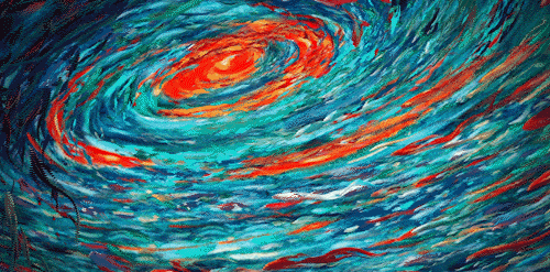 波涛汹涌的红色巨浪,极有压迫感,甚至有点惊悚。