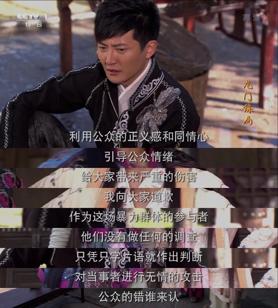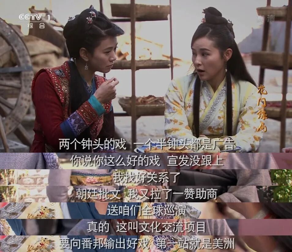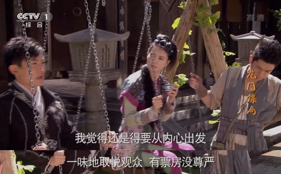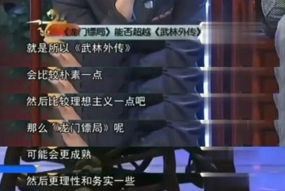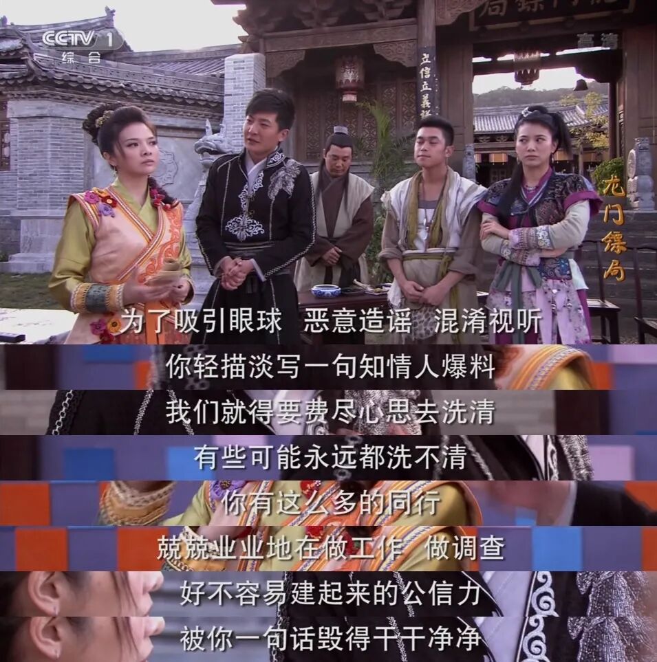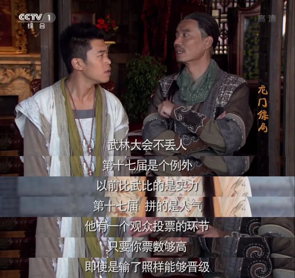 同样是无厘头搞笑风格的古装喜剧,现代思维写就的江湖故事。除了《武林外传》的主演姚晨、沙溢、喻恩泰等人友情出演外。几乎每集都能看到熟悉的面孔,雷佳音、黄晓明、霍思燕、陆毅、陈晓、张子枫、马苏……剧中的龙门镖局,在《武林外传》中是佟湘玉的娘家,只存在于台词中。到了这部剧中,则是和同福客栈一样,汇聚江湖儿女,承载美好回忆的极有分量的存在。中年组主角,袁咏仪饰演的盛秋月,郭京飞饰演的陆三金。前者是龙门镖局的少奶奶,中年丧夫,性情急躁,但为人善良,很能聚拢人心,很容易就联想到「佟湘玉」。后者原是富二代,曾颇有名望,但如今主动退隐,开启了脚踏实地的新生活,也和「白展堂」有相似之处。青年组主角也都能一一找到对应的形象,甚至直接在血缘上有所关联。白敬祺,白展堂与佟湘玉的儿子,说是镖师,但性情怯懦,并无实权,实际就是一个打杂的。吕青橙,郭芙蓉和吕秀才的小女儿,性格外放,功力了得,绝技是「惊涛骇浪」掌。邱璎珞则像「无双」,外形貌美,又是医师,一身本领。可惜情路坎坷,很容易投入一段感情,却始终不能善终。蔡八斗则像存在感极低的「李大嘴」,胆识小、历练少,只有厨艺拿得出手。宁财神表示自己无意复刻《武林外传》的成功,而是想讲述一个全新的故事。不再是传统的室内情景剧,而是戏剧冲突更强,喜剧形式更丰富的连续剧。想传达的也不再是《武林外传》中朴素的理想主义,而倾向于更加理性、务实。宁财神想借这部剧表现的是利益主导、娱乐至上的时代。他用解构、戏仿、拼贴、反讽等诸多后现代喜剧手法,以现代价值观呈现了一个近乎港式无厘头风格的职场故事。「我建议,狂剪戏的那个台,从明天起可以不用看了。」「下午去淘一把锈掉的剪刀,等全部播完,就赠给剪戏最多的台,以示谢意!」2018年,迪丽热巴凭借3.1分剧《漂亮的李慧珍》,打败一众实力派女演员获封视后。而《龙门镖局》早在2013年就预演了一模一样的情节。比赛新增了观众投票环节,只要票数够高,没实力也能拿奖。所以,最终获奖的是实力差,但外形佳,追捧者众多的人。他们都替淘汰者忿忿不平,辣评获奖者是「金玉当当当,败絮嗙嗙嗙」。