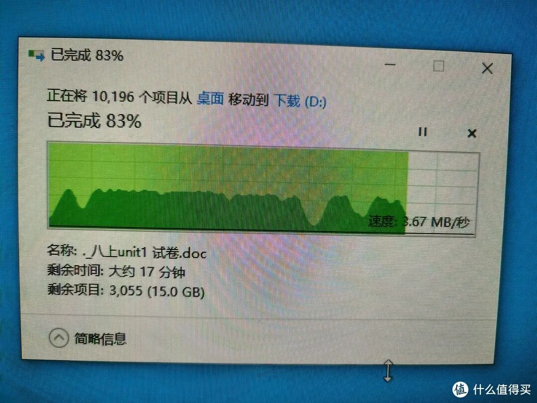最快是大文件每秒55MB,慢的小文件最低3MB。那个09年产的320GB硬盘健康是良好,感觉很吵,近期打算买几个18T的换掉NAS里的4T。