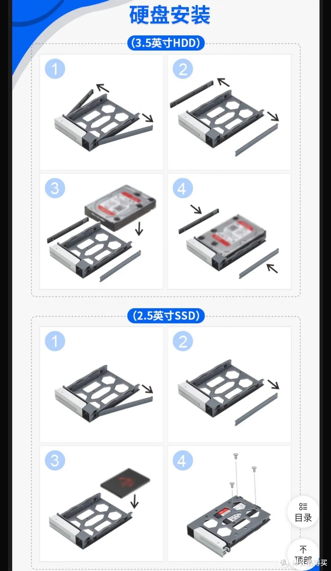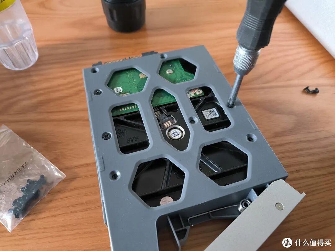 为了更好固定硬盘,还提供了螺丝固定。威联通是用螺丝固定的,群晖是快拆,铁威马两个都采用了。有点画蛇添足了,不过这个看你怎么认为的,从方便上来看,是排名第三的,从牢固性上看可以排第一。