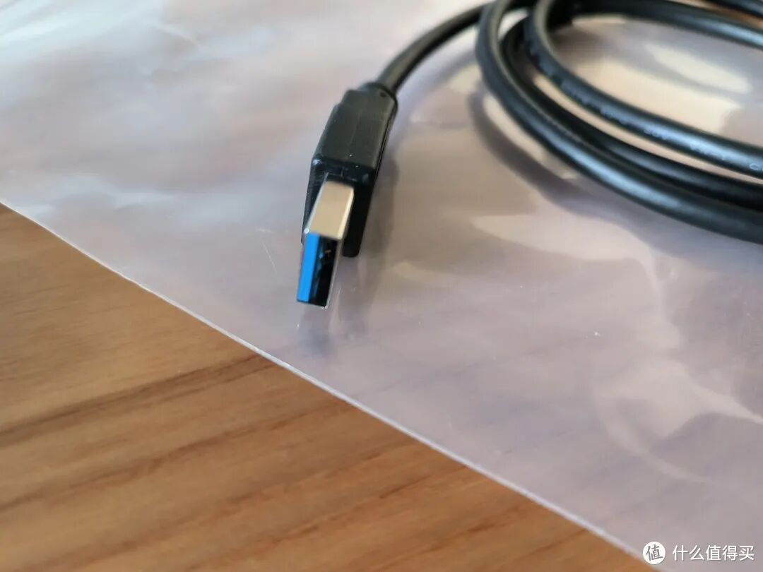 一端是蓝色USB线,支持USB3.1,另一端是安卓手机常见插头形状。