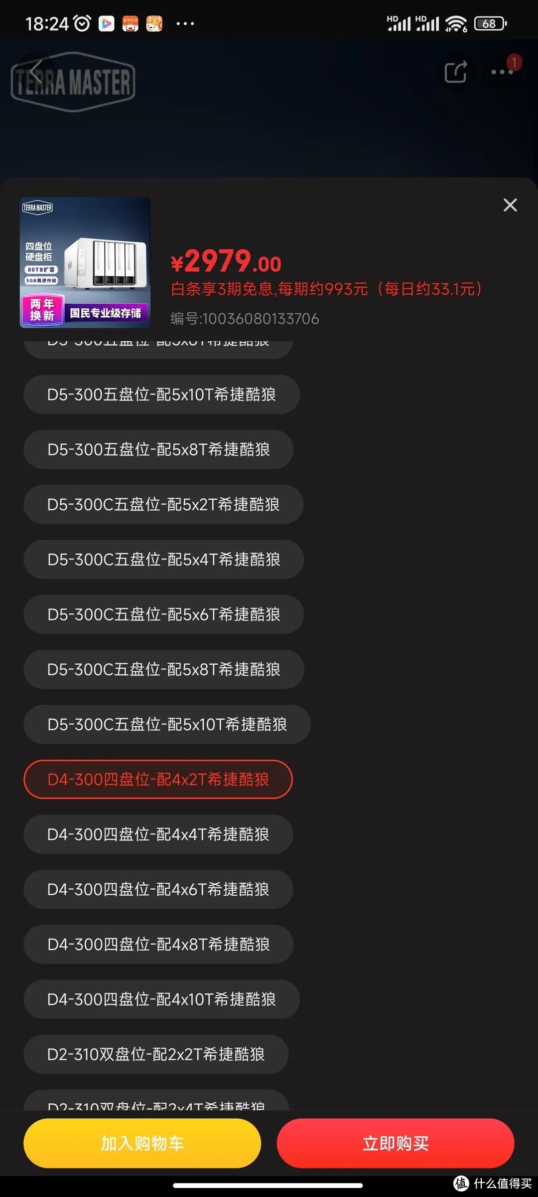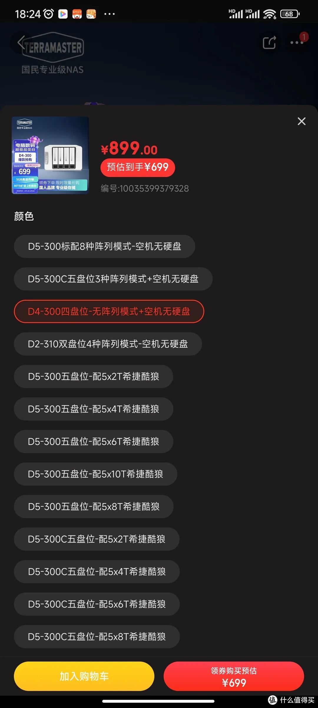 这款铁威马D4-300是值得买前几天推送的硬盘柜,我一眼就看中了,说明它和我有眼缘。恰逢LD想升级大容量存储,我就选了一个我中意的还未曾拥有过的品牌。