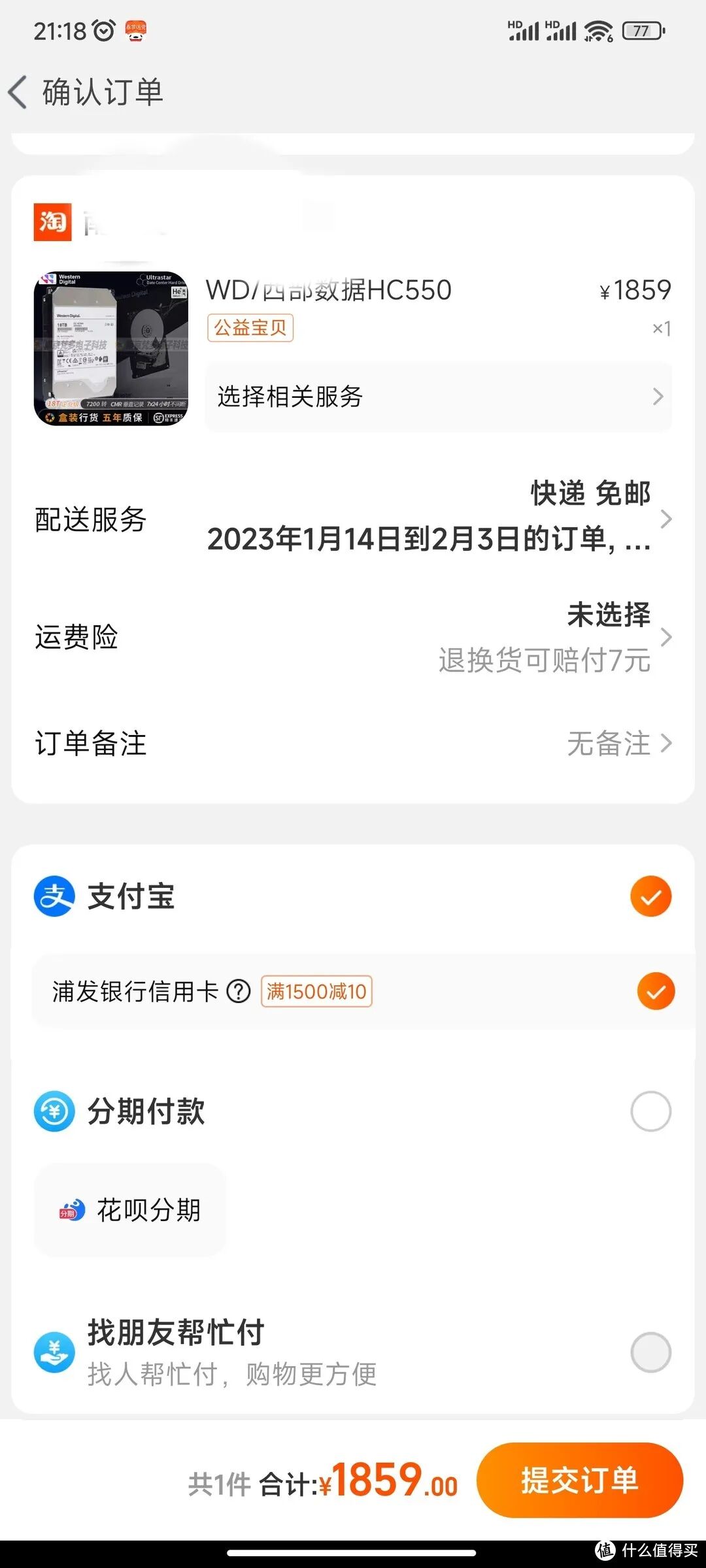 不管是现在还是过去什么时候,NAS专用的红盘都太贵了,大容量我最终选择了西部数据HC550 18T硬盘。去年3月份买的才1800元,现在一看居然涨价了,要1860了。