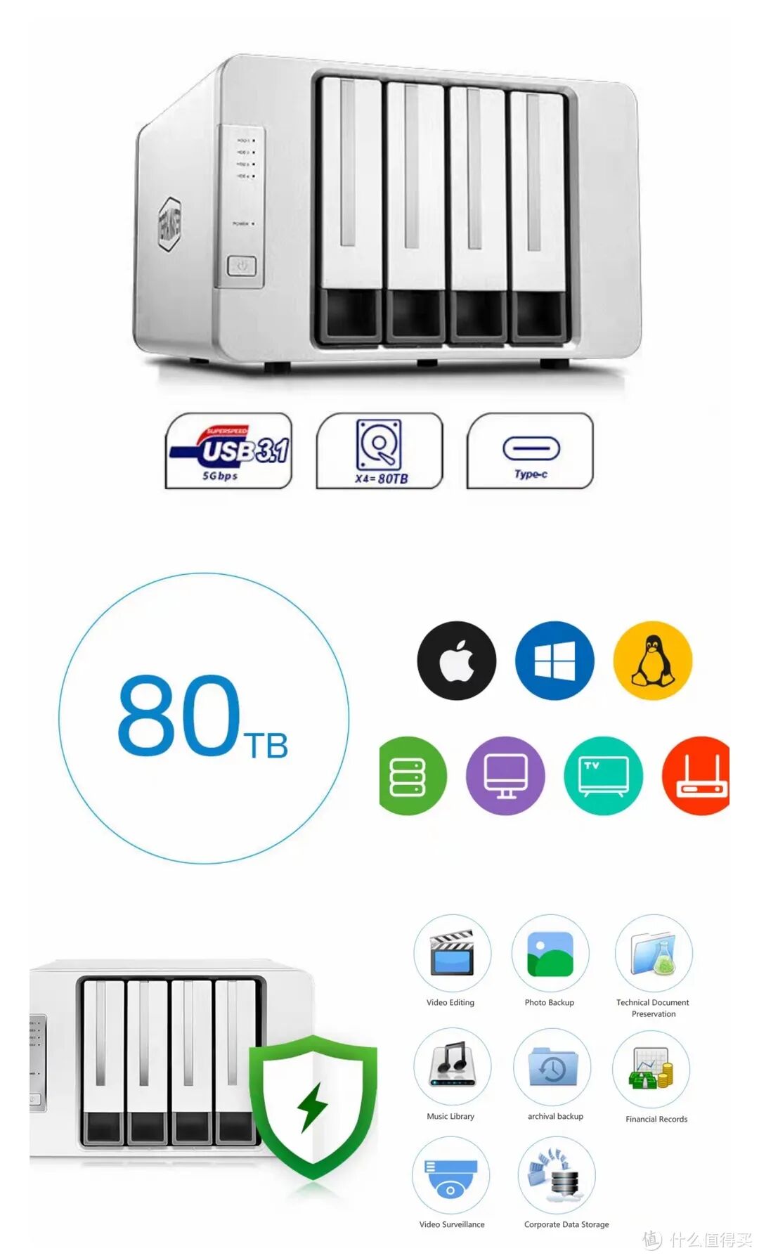 这款铁威马D4-300不带阵列的,看外观像NAS,USB直插款其实就是硬盘盒,没有管理软件,没有阵列模式,简简单单就可以使用,适合绝大多数的人。毕竟学NAS的使用成本很高,不仅更费钱,还更花时间,不利于推广。我家两款NAS用的最多的就是PT下载,以及手机上的图片备份。