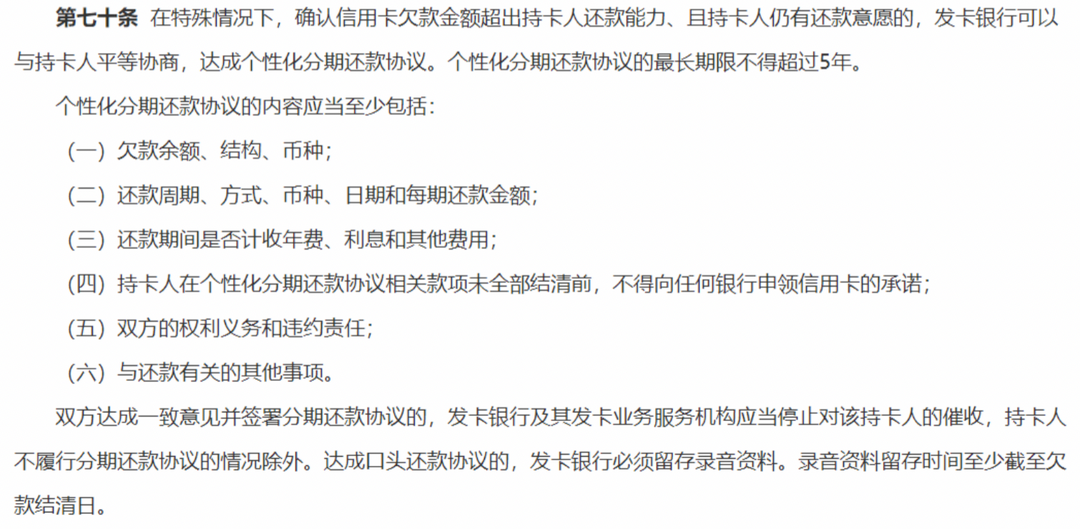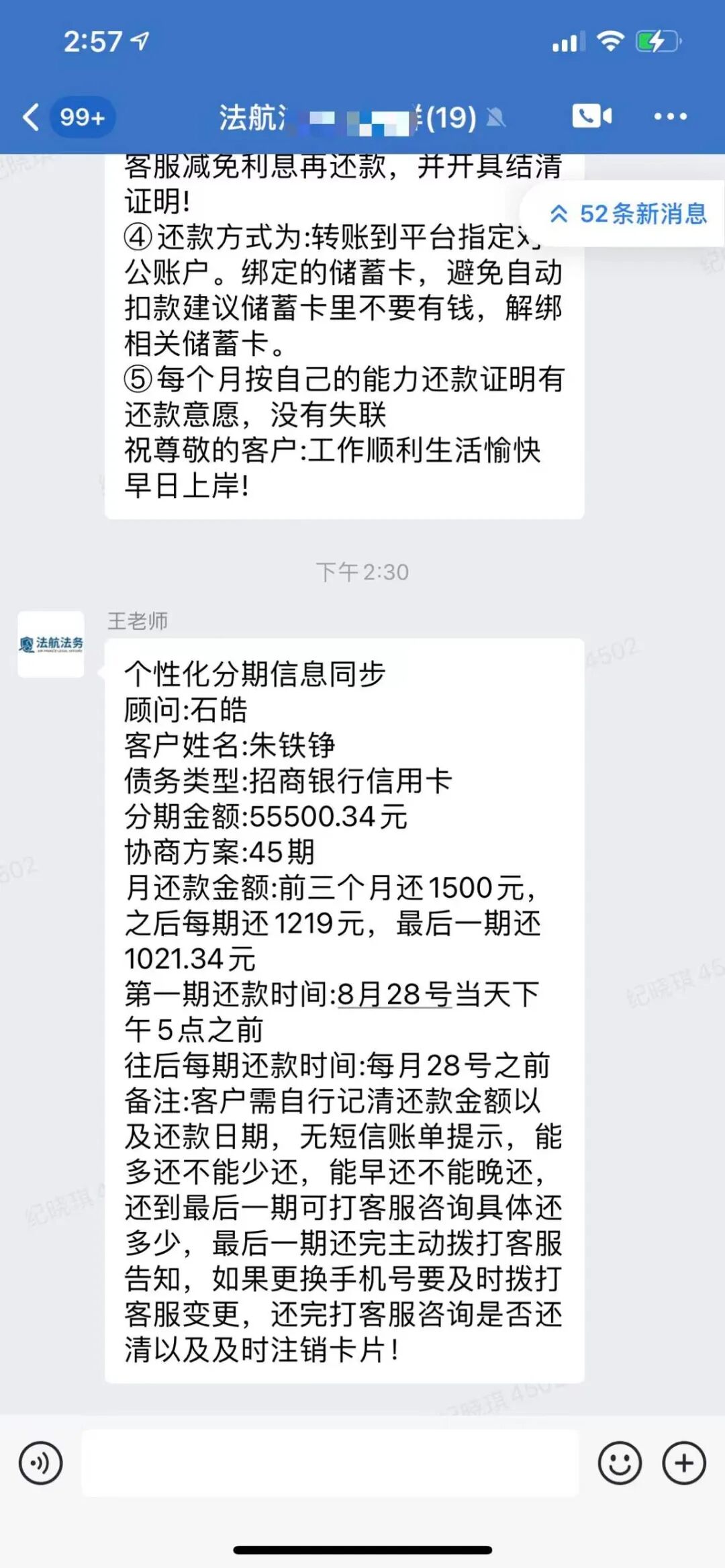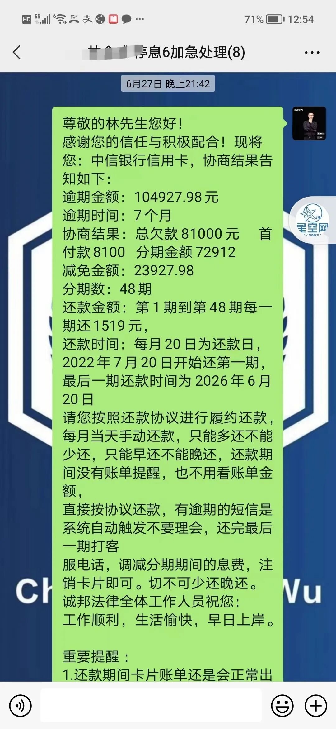 备注:客户按照还款协议进行履约还款,每月当天手动还款,只能多还不能少还,只能早还不能晚还,还款期间没有账单提醒,也不用看账单金额,直接按协议还款,有逾期的短信是系统自动触发不要理会,还完最后一期打客服电话,调减分期期间的息费,注销卡片即可。