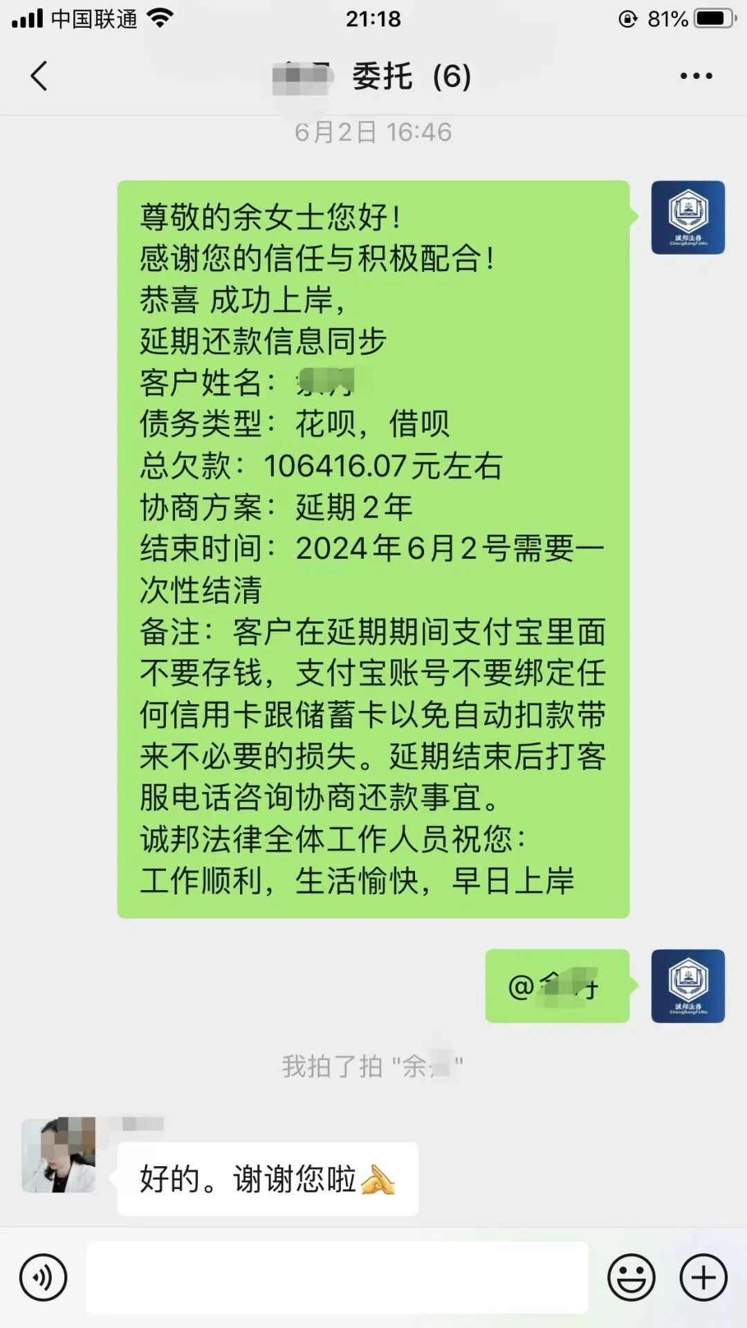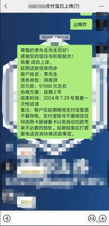 备注:客户在延期期间支付宝里面不要存钱,支付宝账号不要绑定任何信用卡跟储蓄卡以免自动扣款带来不必要的损失。延期结束后打客服电话咨询协商还款事宜。