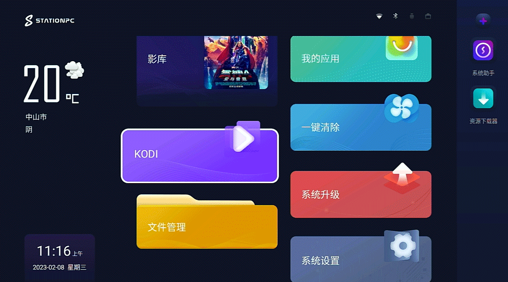 StationPC主机系统自带Kodi软件,打开Kodi,找到设置-插件-从zip文件安装,弹窗记得选择“是”!接着将事先拷贝好【影视大全】插件的U盘/TF卡等移动设备,插入到StationPC主机中,选择存放Kodi影视大全插件的zip文件,等待界面提示“【影视大全】插件已安装”即可。而非StationPC用户,在公众号后台回复关键词【Kodi】,即可获取APK。
