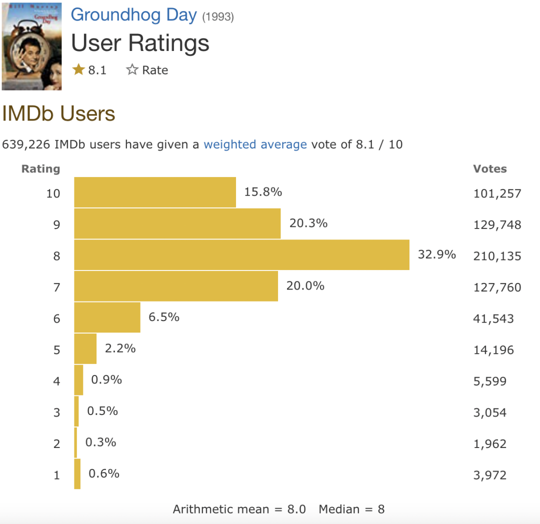 最有趣的是,这部电影把恐怖片里常见的弱智死法黑了个遍。《领袖水准》总体来说还可以,只是名字翻译的实在是太误导人了。重点说一下《土拨鼠之日》同一年,还上映过的一部单日循环的电影《12:01》故事其实很简单,某公司发明了一种对撞机,并在午夜12点对撞。循环总是从下午12:01开始到01:00结束,不断重复,固定时间、固定地点。这部电影的原著《12:01 P.M.》,是科幻作家理查德·卢波夫的短篇小说,发表于1973年。而就在团队张罗着将其扩充为一部长片时,1993年2月,《土拨鼠之日》抢先上映,夺去所有风头。这让几个月后上映的《12:01》成为了“效颦的东施”。老实说,两部作品相似的地方很多,《土拨鼠之日》十有八九借鉴了《12:01 P.M.》的灵感。当时愤怒的原著作者卢波夫试图打官司,但一众律师在努力了半年之后得出结论:算了吧,咱们斗不过哥伦比亚这样的大公司。当然,单从艺术水准上来说,《十二点零一》略显简陋,《土拨鼠之日》确实更胜一筹,是当之无愧的 “时间循环电影最佳模板”。所以这个时代,越来越难出现令人眼前一亮的“新东西”。看到穿越回从前影响未来的,就说是抄袭《蝴蝶效应》;而一部好的影片不仅仅只是某个创意和设定,很多优秀的作品都是在“借鉴”的基础上应运而生的。看过《土拨鼠之日》原片你才能体会到,故事写得生动有趣。比尔·默里饰演的菲尔康纳,是一位天气预报的播报员。毕竟那个网络不发达的年代,关注天气预报的人要比看新闻的人还多。不过众所周知,天气预报其实是对着一面蓝屏比比划划的。另外他也不喜欢周围的人,对一切都提不起兴趣,极度厌倦想要跳槽。而要说“压倒骆驼的最后一根稻草”,就是每年2月2日的“土拨鼠之日”的庆典直播。每年2月2日的8点,加拿大威尔顿城,美国威斯康星州的一些地区,都有类似的传统节日。最有名的,大概要属宾州的普客托尼小镇(或译为普苏塔尼,即《土拨鼠之日》的故事发生地)的土拨鼠日。2021年看过她出演的美剧《女佣》,担任女主角的疯癫老妈。当然了,戏里戏外玛格丽特·库里和安迪·麦克道威尔都是母女。菲尔、丽塔加上摄影师兼司机莱瑞一起来到了普苏塔尼小镇。处处讽刺挖苦身边的人,更是在赶往报道的路上一脚踩进了水坑里。菲尔只想报道完活动马上赶回家,结果暴风雨来临,他们被困住了。第二、作为天气预报员,菲尔没有想到暴风雪会突然降临。愚蠢的人们宁愿相信土拨鼠可以预测天气,但仔细想想也不怪大家相信土拨鼠,因为人类确实不能精准预测天气。更糟糕的是遭遇雪灾,通讯都被切断了,连洗澡的热水都停了。一开始,他非常生气,因为他生命中明明有非常美好的一天,偏偏被重复的是这糟糕透顶的一天。颓废之后,菲尔突然悟了,既然每天都会重启,那是不是可以随心所欲做任何不必负责任的事情,哪怕是犯罪。除了飙车、打人、抢银行之外,他还利用这个重启的能力,泡遍了镇上所有的妹子。第一天搭讪,第二天用前一天问来的信息,进行缘分配对。直到他觉得无聊了,便把目标锁定了自己的女同事丽塔。他可以每天了解丽塔一点,直到她喜欢什么,不喜欢什么,每天改进一点,直到完全摸清并攻克。她总觉得哪里不对,一个刚刚认识自己两天的新同事,怎么可能知道那么多自己喜欢的东西。实在是太无聊了,菲尔实在是找不到接下来生活的意义了。虽然并没有改变重启的困境,菲尔对待生活的态度却变了。他开始利用相同而又不同的每一天,对身边的人热情、礼貌。拯救一个一个面临危险的声明,温暖一个一个冰冷的心。与此同时,他还学习了冰雕、钢琴,反正可以日复一日地学,他成为了冰雕大师、钢琴手。最终的落脚点依然是爱情,变得乐观而积极,获得了知识、才华与爱情,然后一切继续前进。如果你今年的眼光来看《土拨鼠之日》,这部电影的创意既不够特别,也不够深刻。但如果放在30年前,它绝对可以算是循环类奇幻电影的先河。这个问题我确实也思考过:如果重复一天,我能干什么?我能想到的无非就是每天吃不同的山珍海味,去最近最豪华的酒店挥霍几次,最后还是只能回归精神世界。科学、文学、艺术,才是永无止境可以追寻下去的东西。
