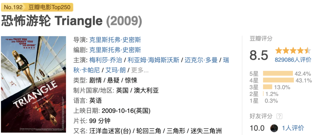 其实直到现在,天气依然是一种我们每天都会预测,但是每天都不保准的事情。天气是一个“混沌系统”,其中微小的差别,都会导致最终状况出现较大的差距。不过每年2月2日,北美很多地区的人们都会冒着严寒,看一只土拨鼠的预测天气。据说在这一天,这只小小啮齿动物,可以“播报”未来六周的天气。上映了30年的经典之作,1993年的神奇电影《土拨鼠之日》(Groundhog Day),就是从这个节日开始的。以及在这部「单日循环」的奇幻电影之后,又诞生了哪些类似的作品。2009年上映的《恐怖游轮》,原名“三角”《Triangle》这个故事的主题,是一个不愿意承认自己死亡的灵魂所做的徒劳挣扎。这个电影出现以后,有了很多不同的解读,大多是与西西弗斯的故事背景相同。