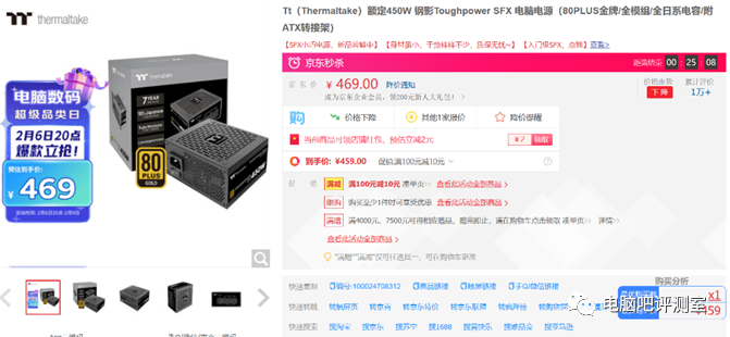 再就是这个电源选择,很重要!很重要!很重要!这里强调,所以说三次!因为你要7x24小时开机,所以千万别买杂牌电源,也不要去捡也二手电源!毕竟你不知道这二手电源用了多久,干过什么,万一坏了就什么都没了!瓦数不用多,450W带5最大5个硬盘那是相当够了,也是SFX电源入门级瓦数。TT这个刚影SFX450根据某些up测试,和海盗船的SFX450基本是不相上下。现在海盗船SF450停产了,那咱就买TT吧!金牌全模组,理线还方便,469价格不贵!