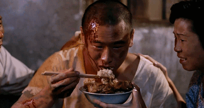 李得胜淌着血,流着泪,连血带泪扒着饭,仿佛他的血肉,终于和这异乡的饭菜,融为一体…