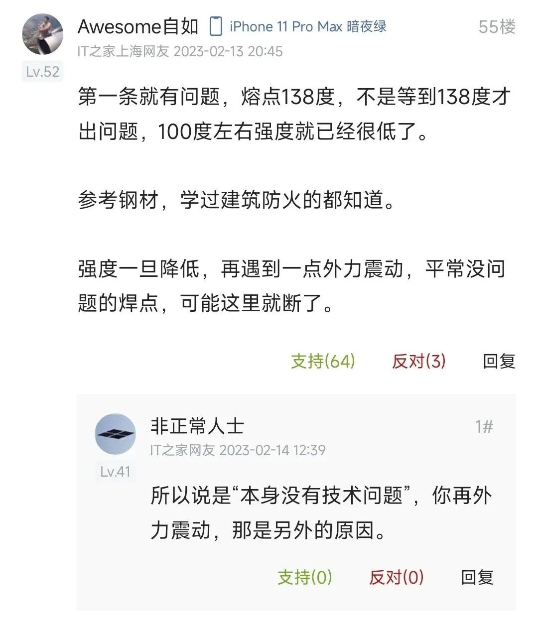 经过他的研究,他发现联想使用的低温锡膏可能是导致问题的元凶,一般主板上的锡需要 200 度以上的高温才能融化,但是联想小新主板上的低温锡是 150 度即可融化。