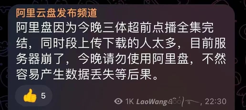 但咱不看补偿,单看问题,是什么导致那一天的无法使用呢?官方没有明说,但这个消息传出的电报群里,正热火朝天地分享着一个剧,4K 清晰度的大结局。