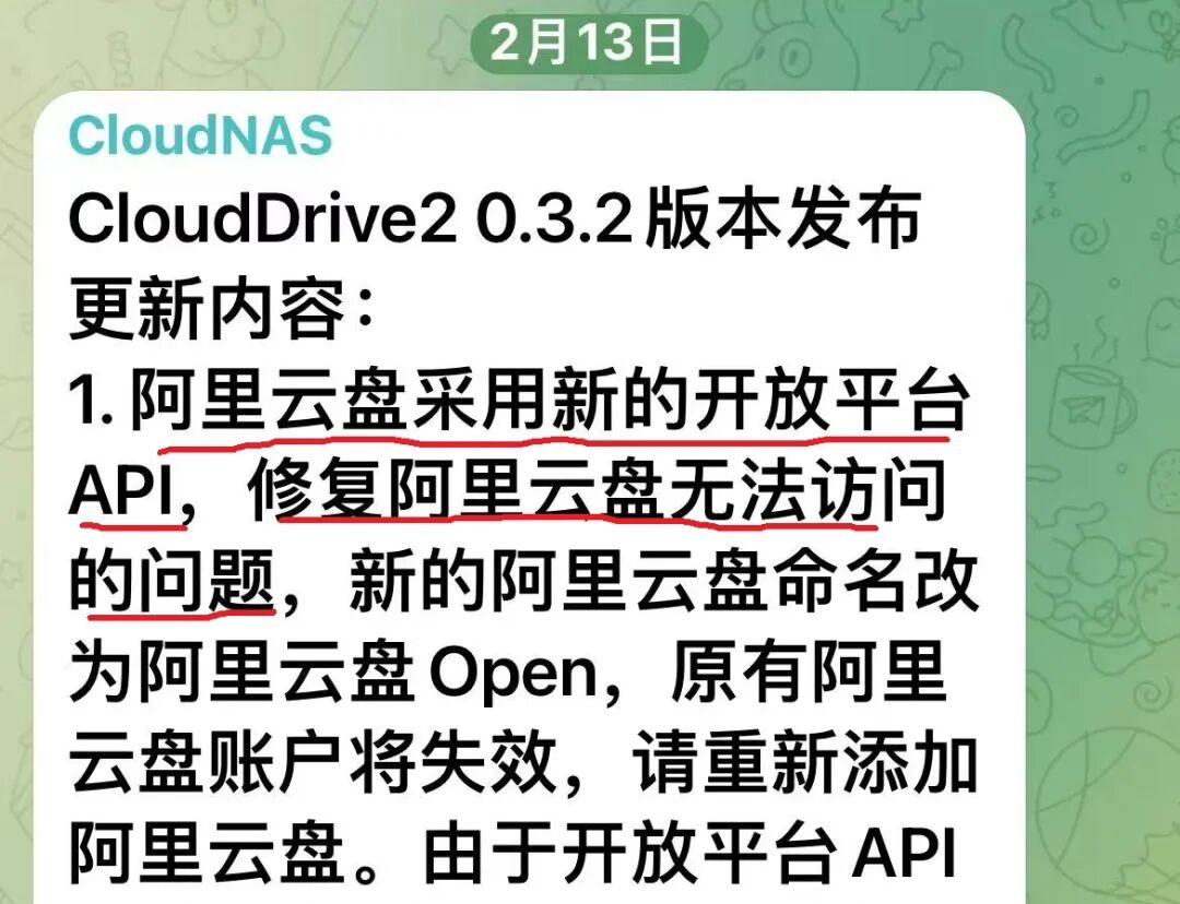 发布频道还紧急来了个勿用阿里云盘的提醒通知: