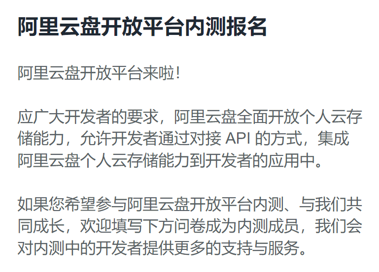 曾经这样的态度,在这一轮改接口的大动作发生后,阿里云盘是怎么对待第三方开发者的呢?