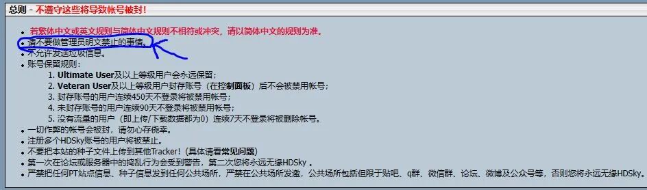 老鸟:就是看下载规则里面有没有HR要求。HR就是下了就跑,所以有些PT强制HR要求,即下载种子后必须保种多少时间,不同地方不同规定,所以一定看规则里面有没有HR要求。虽然咱们站没有HR要求,但是下载后保种是好行为 。