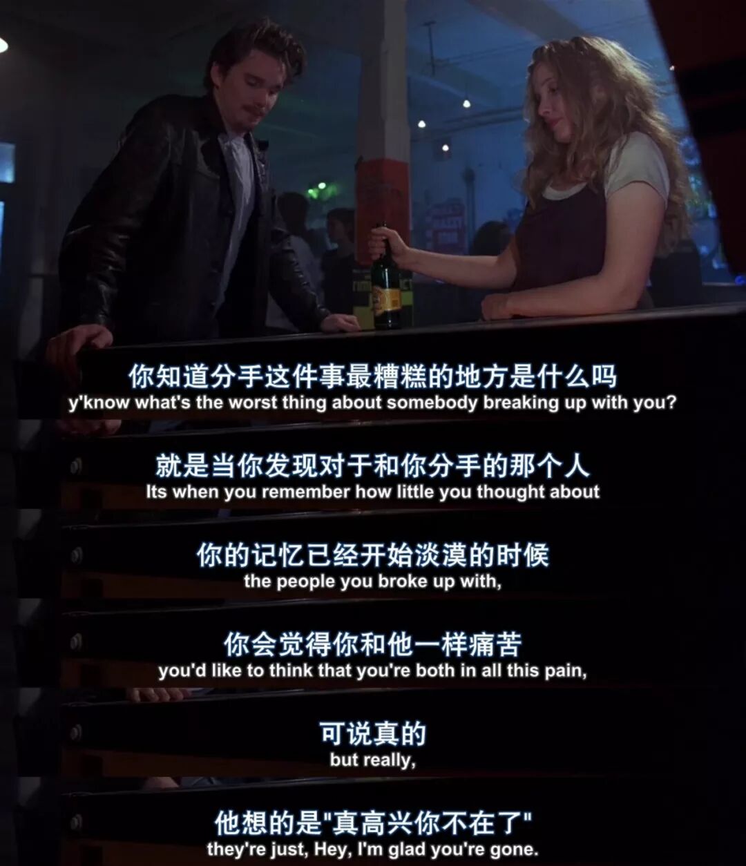 ©️《克莱尔的膝盖》理查德·林克莱特的《爱在》系列继承了以上两种风格,包括伍迪艾伦神经质的无聊漫谈和侯麦的清新浪漫。男、女主徜徉在维也纳和巴黎的街头,从对爱情的体验,从我们都只是宇宙中的一颗星尘到女权主义,从死亡到艺术再到哲学,谈论着爱情的本质。