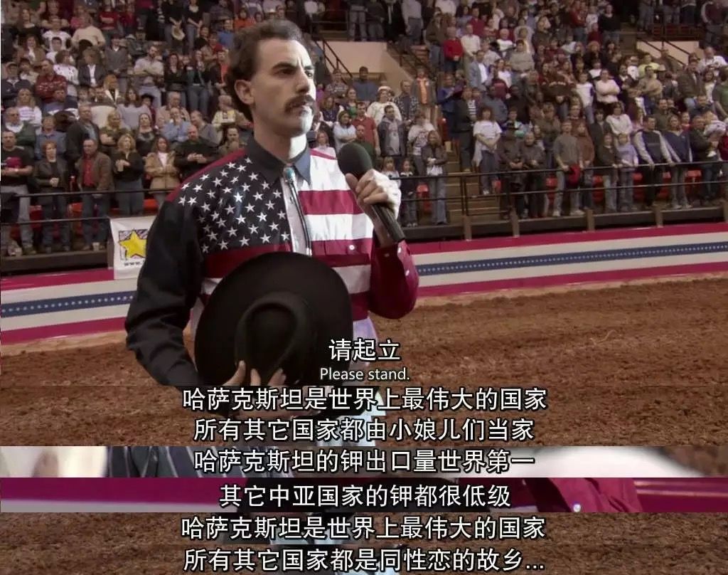 ©️《疯狂店员》萨莎·拜伦·科恩的《波拉特》中,哈萨克人波拉特在美国一开口就很尴尬,激怒了各个阶层的美国人,但是什么都挡不住波拉特的臭嘴,他就是想话痨,戳破那张自命不凡的纸。