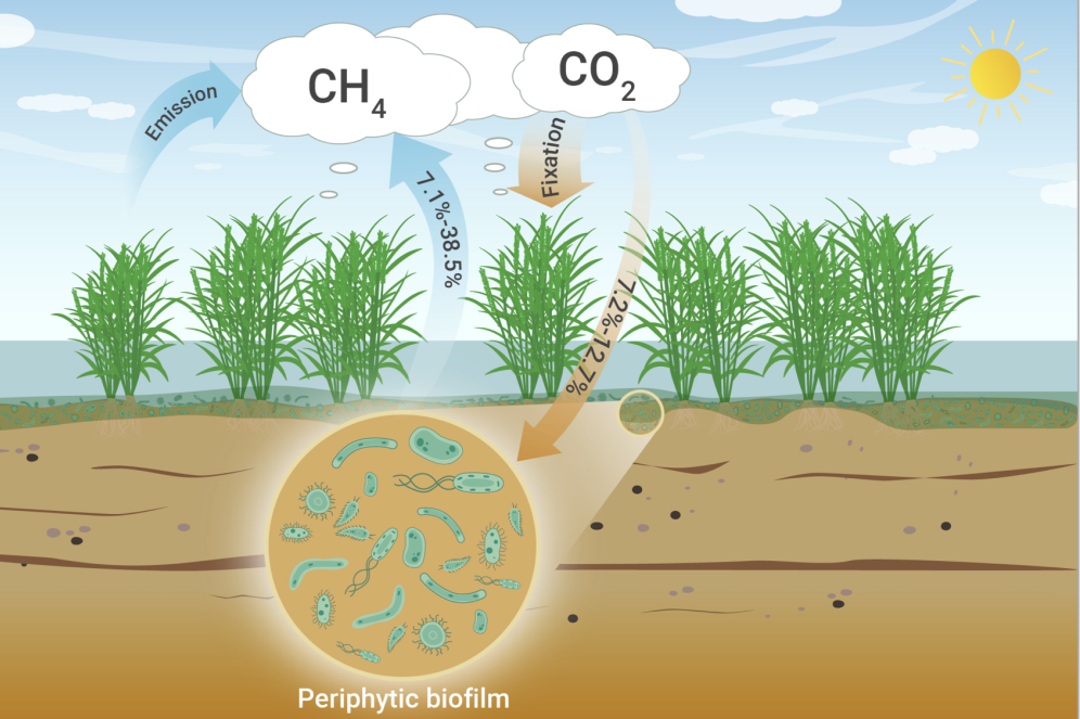 Contribution of periphytic biofilm of paddy soils to carbon dioxide fixation and methane emissions