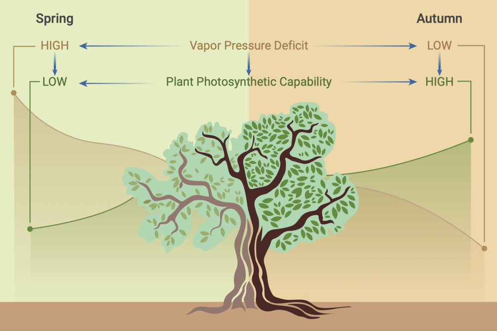 Higher plant photosynthetic capability in autumn responding to low atmospheric vapor pressure deficit