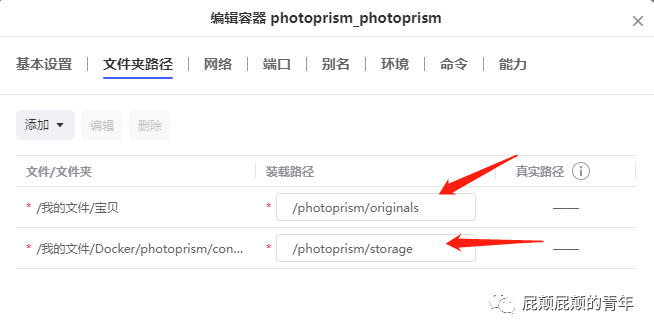 文件夹配置文件config文件对应转载路径/photoprism/storage