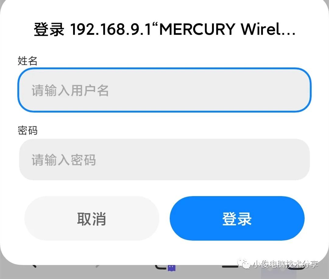 复制完成之后,我们打开手机上面的浏览器,把这个地址输入进去,然后就会要求我们输入登录用户名和登录密码,那这个用户名和密码是什么呢?我们只要把路由器翻过来,在路由器背面,就会有这些用户名和密码,我们按照这些输进去,就可以登录成功!