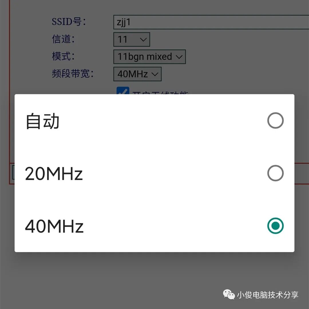 那除了更改信道之外,我们还要把下面的频道带宽也更改为40MHz,一般默认情况下呢,也是20MHz的,我们更改为40之后,网速就可以提升一倍!