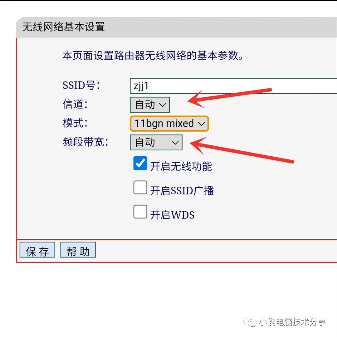 打开无线设置之后,我们可以看到在右边有一个无线信道和频道带宽,一般情况下呢,这2个功能在默认情况下都是自动的,或者呢信道在第5信道