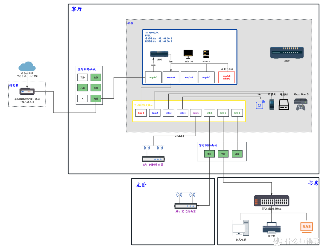 i5 4590 PVE虚拟机 单软路由家庭网络拓扑图
