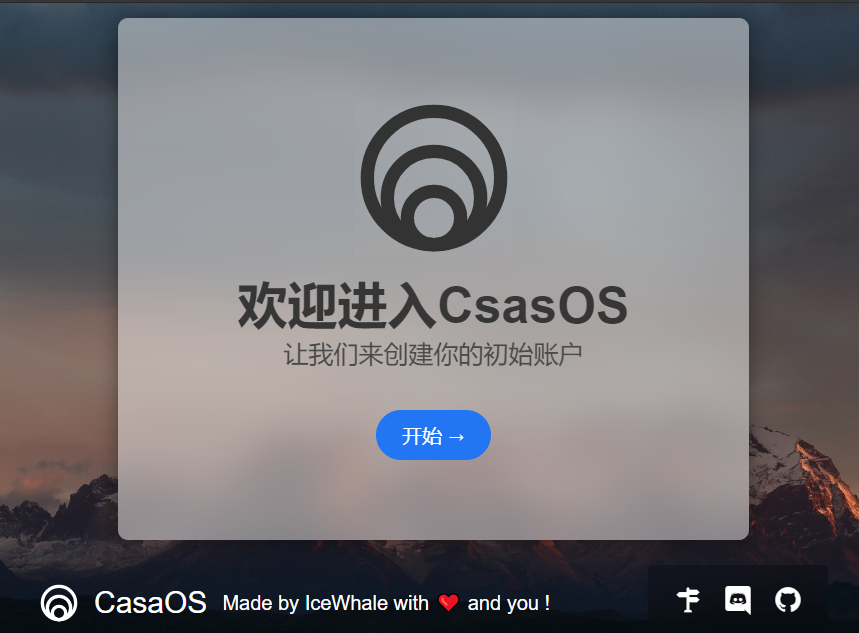 wget -qO- https://get.icewhale.io/casaos.sh | bash安装完成后,脚本会启动服务,并监听在 80 端口上。在浏览器上输入 http://{ip} 进行访问: