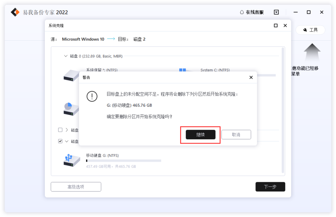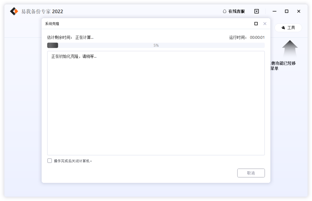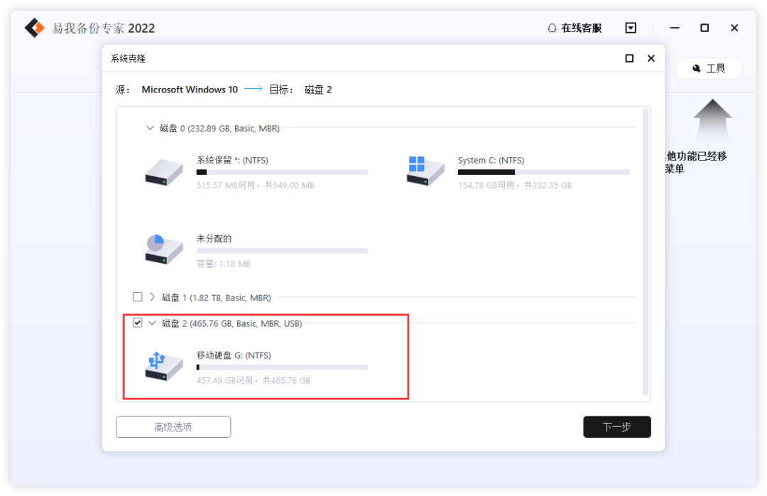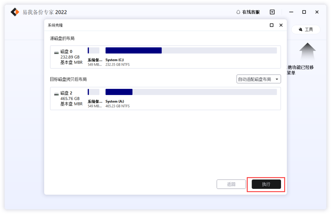 小提示:如果系统分区和启动磁区不在同一个磁盘上,则不能使用系统克隆。