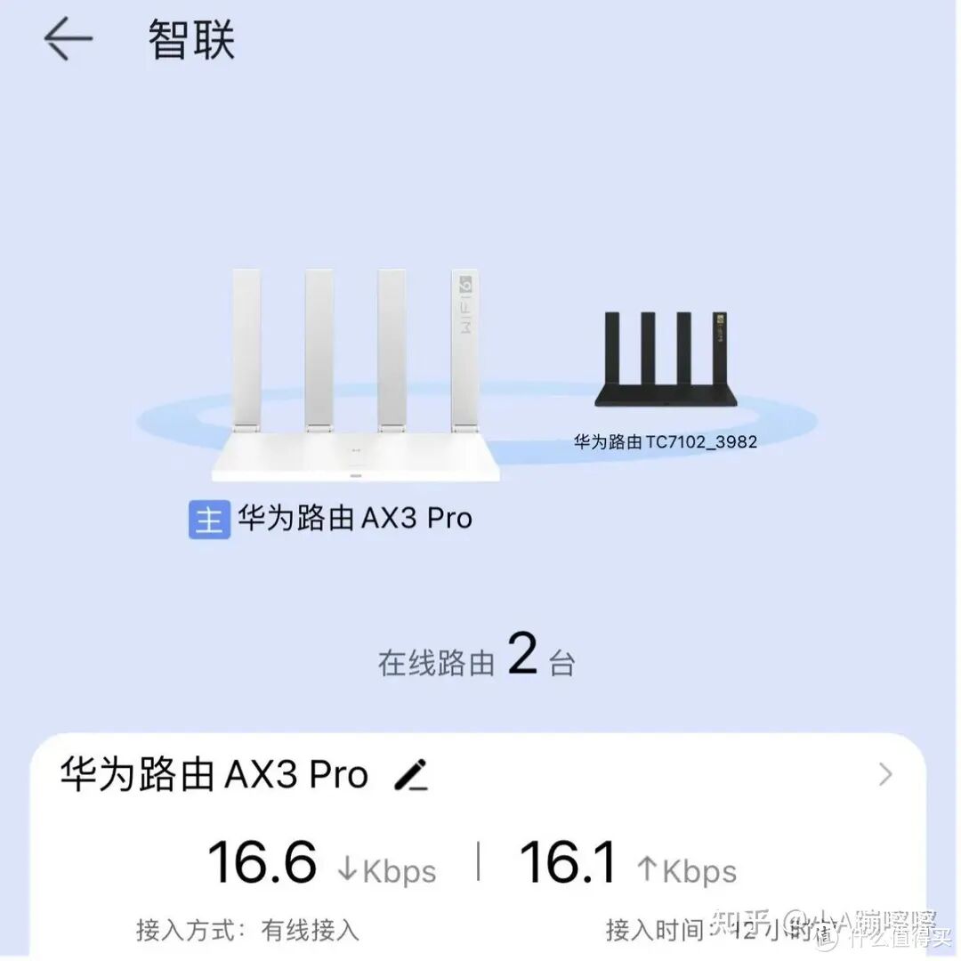 我又去找了倒腾手机的二道贩子知友,他直接问我家里路由什么牌子,华为的?那好,直接上华为AX3 PRO,智能组网,适合小白。