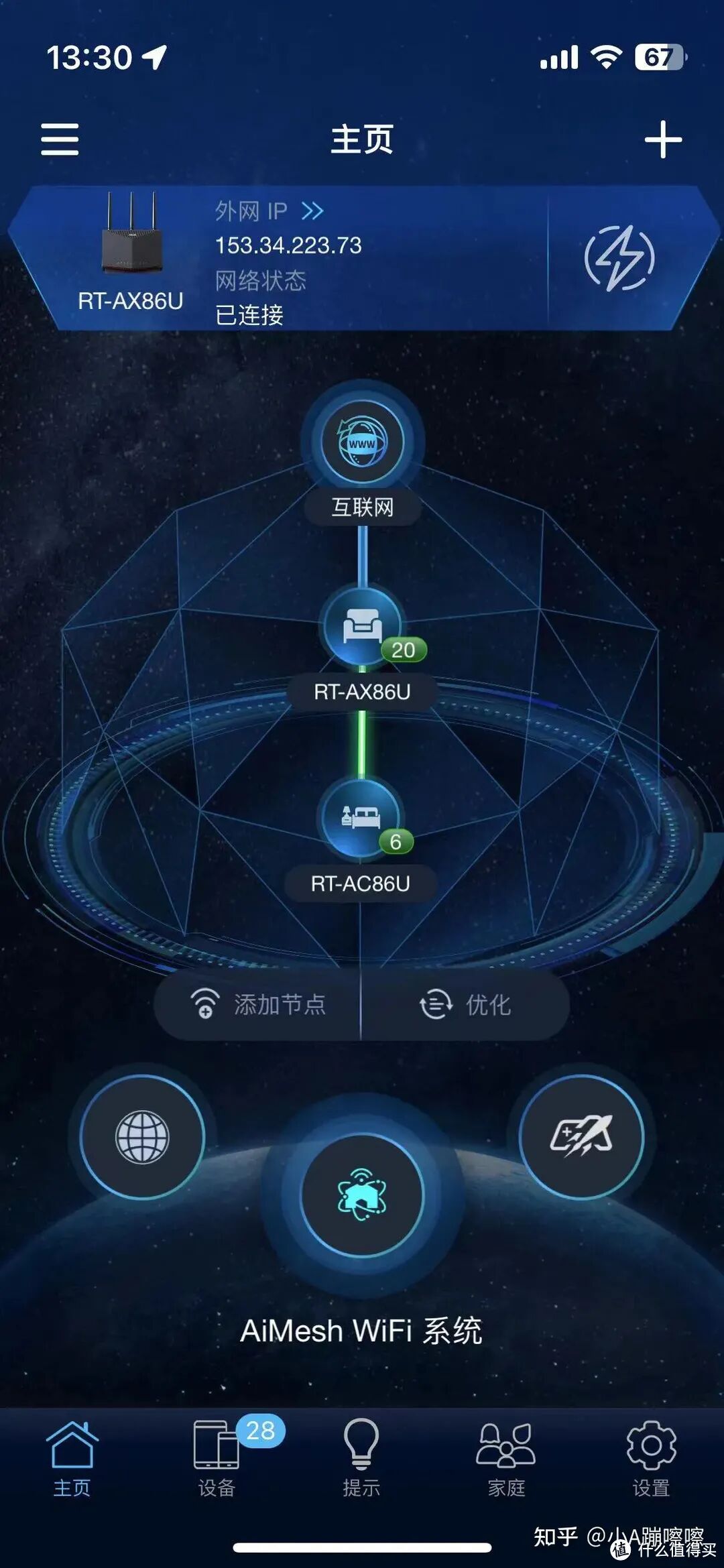 智能控制友好度100分,各种设备联网限速app上都可以控制,很直观明了,想断哪个设备网断哪个,交互上小白友好。设置了每天夜里重启路由,以保证设备运转良好。