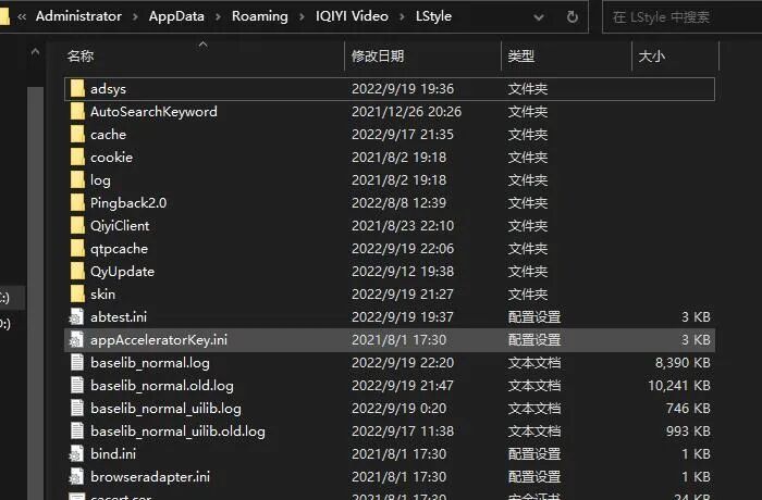 打开这两个文件夹后,会出现很多软件安装的文件夹,那么到底要删那些才好呢?因为每个人电脑安装的程序不一样,文件夹也会不一样,所以小编的建议就是先找到你安装视频软件的文件夹,里面会有一堆的缓冲文件,删除就好,以爱奇艺为例: