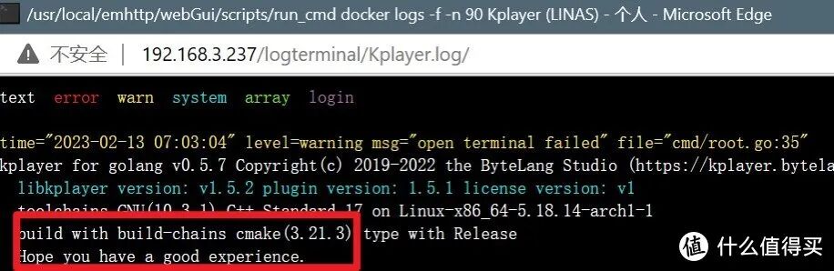 7.那么最简单的配置文件就配置好了,保存即可,然后运行docker,看一眼日志,显示图里的样子就开始直播了