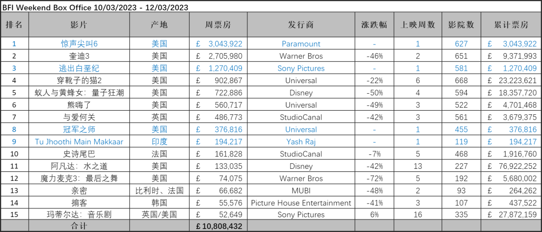 新片中《黑的教育》成绩最佳,《惊声尖叫6》作为对岸观众热衷的恐怖片成绩较差。